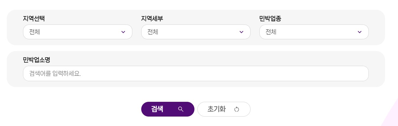 2️⃣ 상단 메뉴 [민박 찾기] → [민박업소 안내]